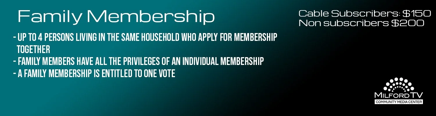 To become a member of Milford TV, a person or organization must meet all of the following conditions: